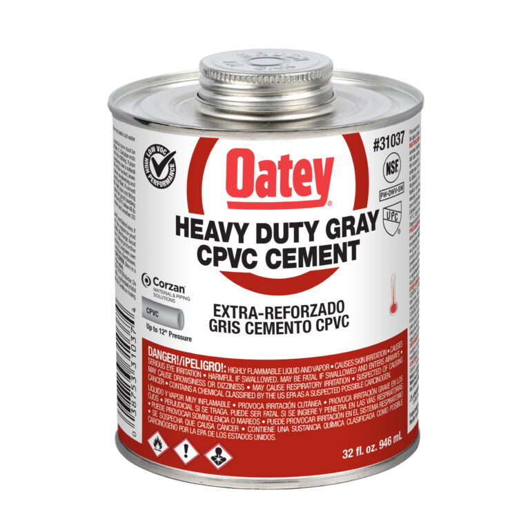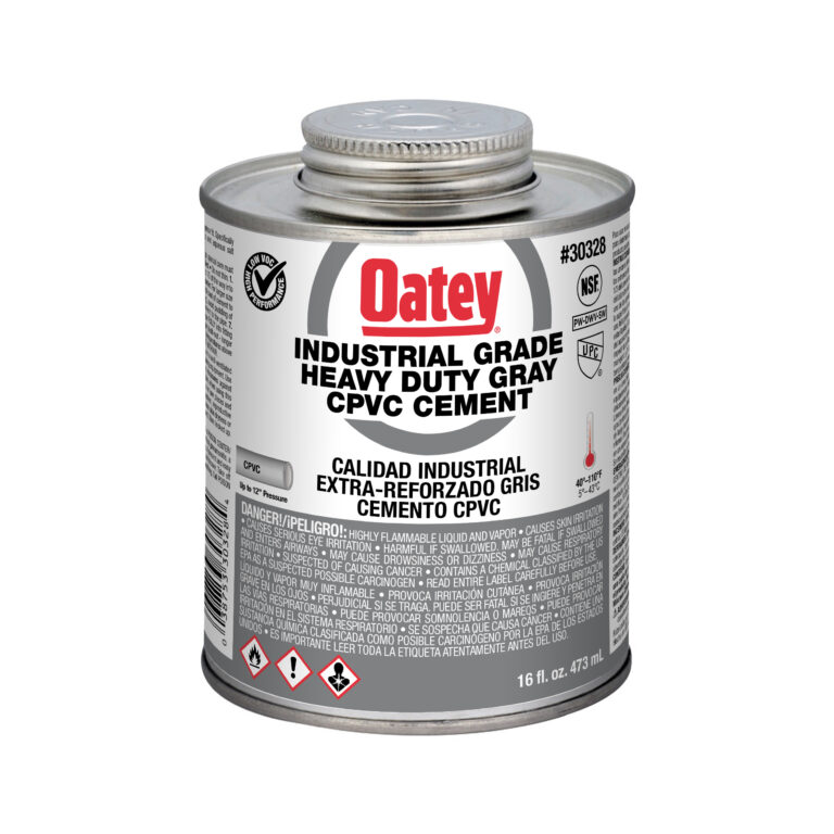 Oatey® CPVC Heavy Bodied Medium Set Gray Cement, empfohlen für gewerbliche Warm- und Kaltwassersysteme bis zu 93°C / 200°F. Geeignet für alle Arten und Klassen von CPVC-Rohren und -Fittings bis zu einem Durchmesser von 12 Zoll mit Presspassung. Oatey-Produkte genießen seit über 100 Jahren das Vertrauen von Sanitärfachleuten.