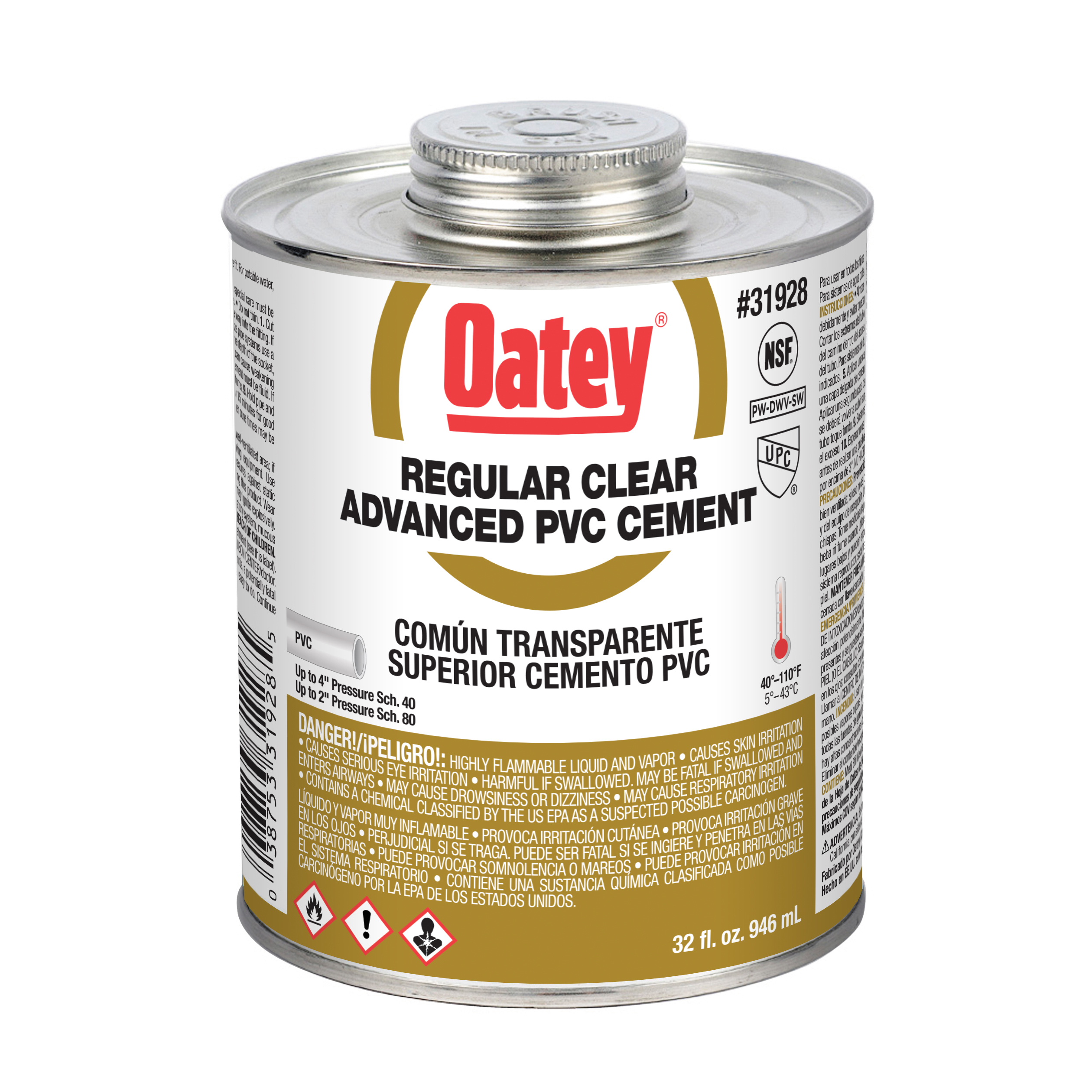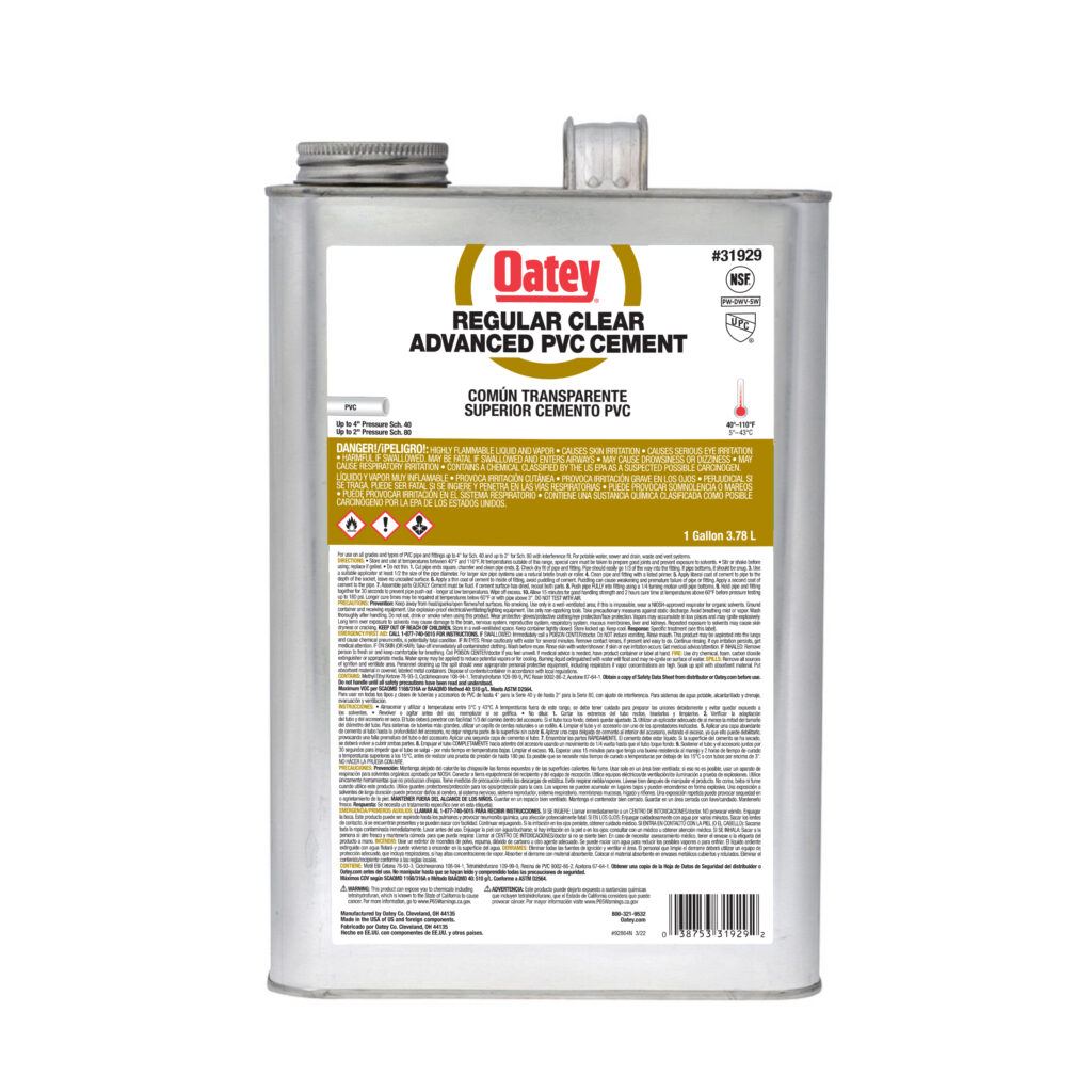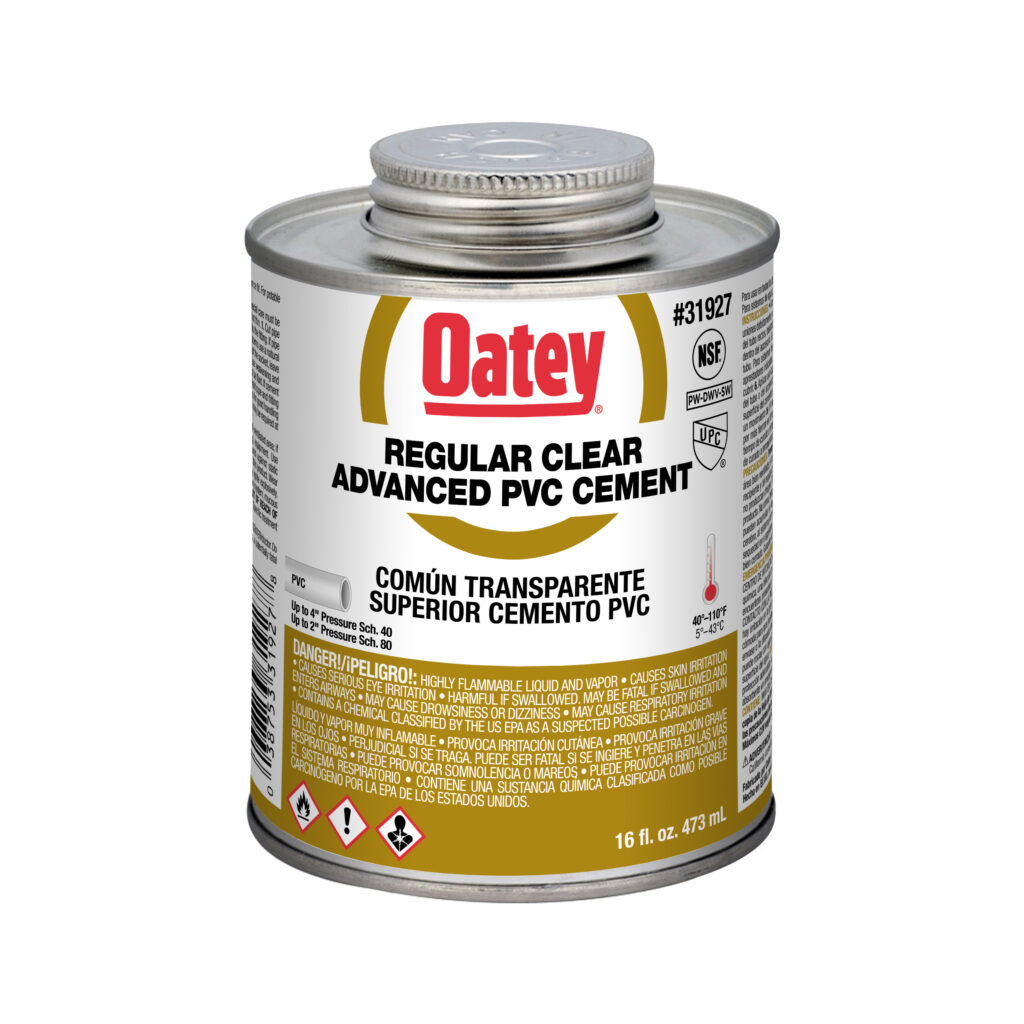 Oatey® PVC Regular Bodied Advanced Fast Set Clear Cement wird für DWV, Druckleitungen, Trinkwasser und elektrische Anwendungen empfohlen. Er ist für eine schnelle Aushärtung konzipiert und lässt sich mit dem mitgelieferten Pinsel leicht auftragen. Dieser klare, schnell abbindende Zement mit normaler Konsistenz kann zum Schweißen von PVC-Rohren und -Formteilen aller Größen und Klassen bis zu 4 Zoll für Schedule 40 und bis zu 2 Zoll für Schedule 80 mit Presspassung verwendet werden. Oatey-Produkte genießen seit über 100 Jahren das Vertrauen von Sanitärfachleuten.