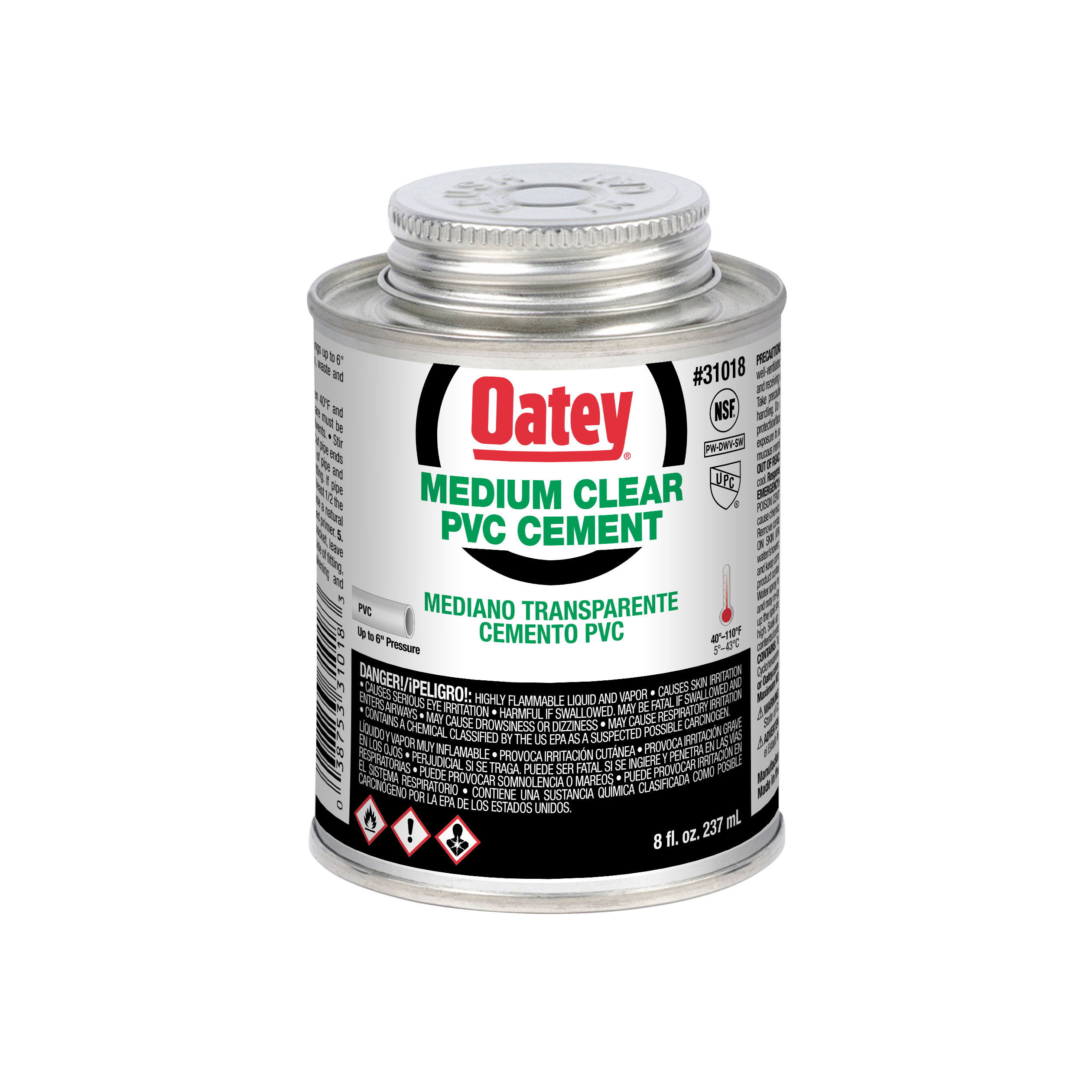 Oatey® PVC Medium Bodied Fast Set Clear Cement wird für DWV, Druckleitungen, Trinkwasser und elektrische Anwendungen empfohlen. Der mittelstarke Zement hat hervorragende spaltfüllende Eigenschaften und lässt sich mit dem mitgelieferten Pinsel leicht auftragen. Dieser klare, schnell abbindende Zement kann zum lösungsmittelbasierten Schweißen aller Arten und Klassen von PVC-Rohren und -Formteilen bis zu einem Durchmesser von 6 Zoll mit Presspassung verwendet werden. Oatey-Produkte genießen seit über 100 Jahren das Vertrauen von Sanitärfachleuten.