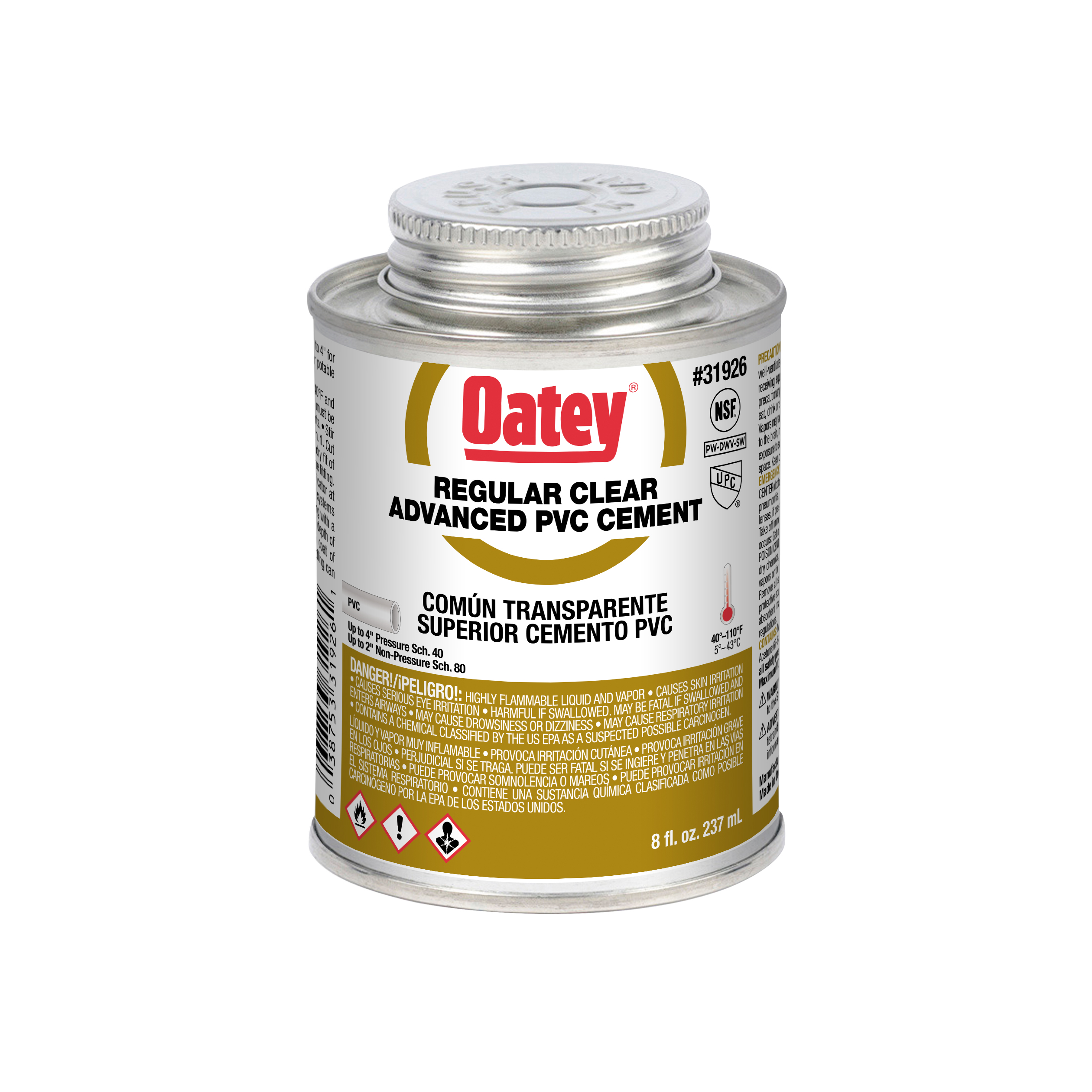 Oatey® PVC Regular Bodied Advanced Fast Set Clear Cement wird für DWV, Druckleitungen, Trinkwasser und elektrische Anwendungen empfohlen. Er ist für eine schnelle Aushärtung konzipiert und lässt sich mit dem mitgelieferten Pinsel leicht auftragen. Dieser klare, schnell abbindende Zement mit normaler Konsistenz kann zum Schweißen von PVC-Rohren und -Formteilen aller Größen und Klassen bis zu 4 Zoll für Schedule 40 und bis zu 2 Zoll für Schedule 80 mit Presspassung verwendet werden. Oatey-Produkte genießen seit über 100 Jahren das Vertrauen von Sanitärfachleuten.