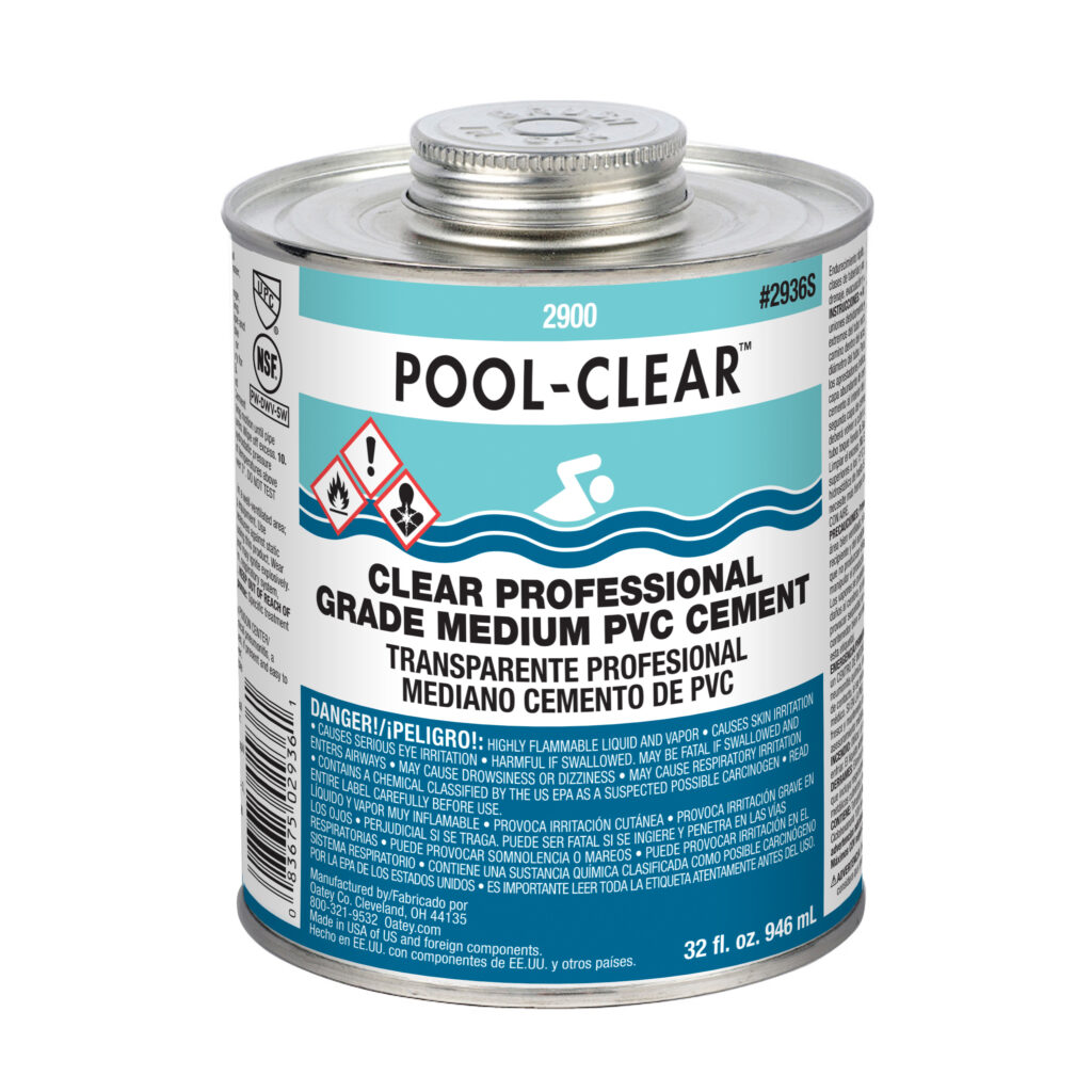 Oatey® 2900 Serie Pool-Clear™ Medium Clear PVC Cement ist ein dickflüssiger, blauer oder klarer Lösungsmittelzement, der für flexible und harte PVC-Rohre und -Formstücke entwickelt wurde. Oatey-Produkte genießen seit über 100 Jahren das Vertrauen von Sanitärfachleuten.